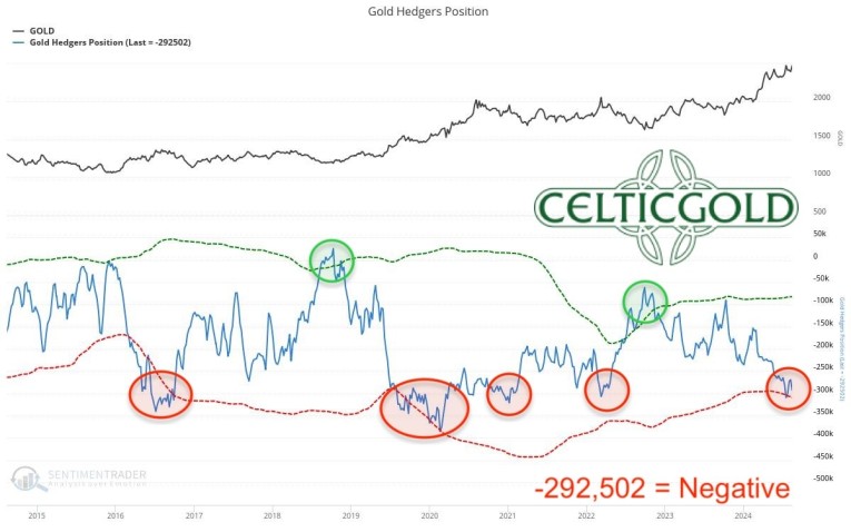 Either way, the current positioning of professional actors in the paper gold market remains extremely unhealthy, as the professionals evidently see a high need for hedging. Moreover, since the last data collection, gold prices have risen significantly, hence the situation is likely to have further intensified.