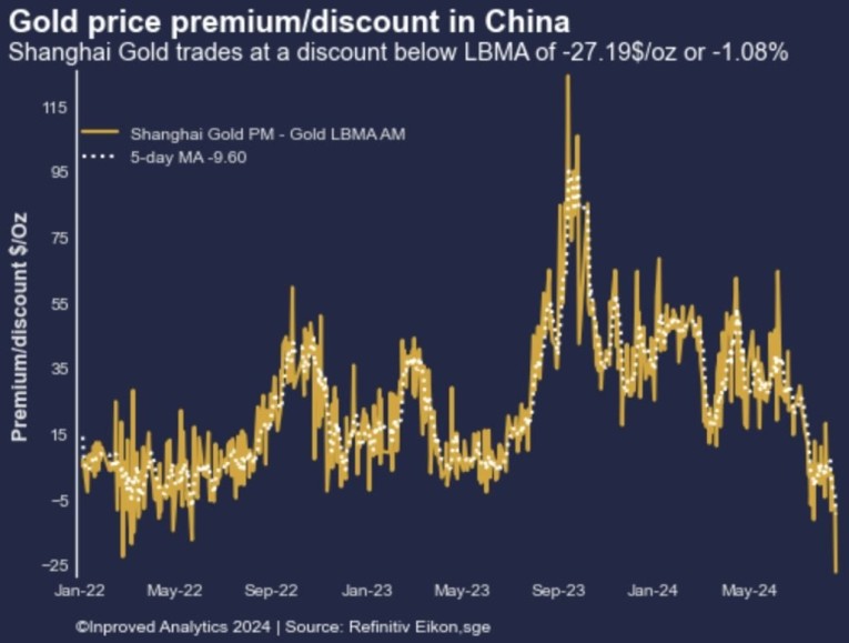 Gold price premium/discount in China as of August 21st, 2024. Source: InProved Analytics