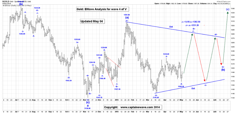 We have made no change to our longer term view that wave a of our wave 4 triangle ended at $1130.40 -- and that we are now rallying in our first (a), (b), (c) pattern of wave b. Wave (a) still ended at $1307.80, and within our wave (b) triangle, wave -a- ended at $1141.60 -- and we are now working on wave -b-.