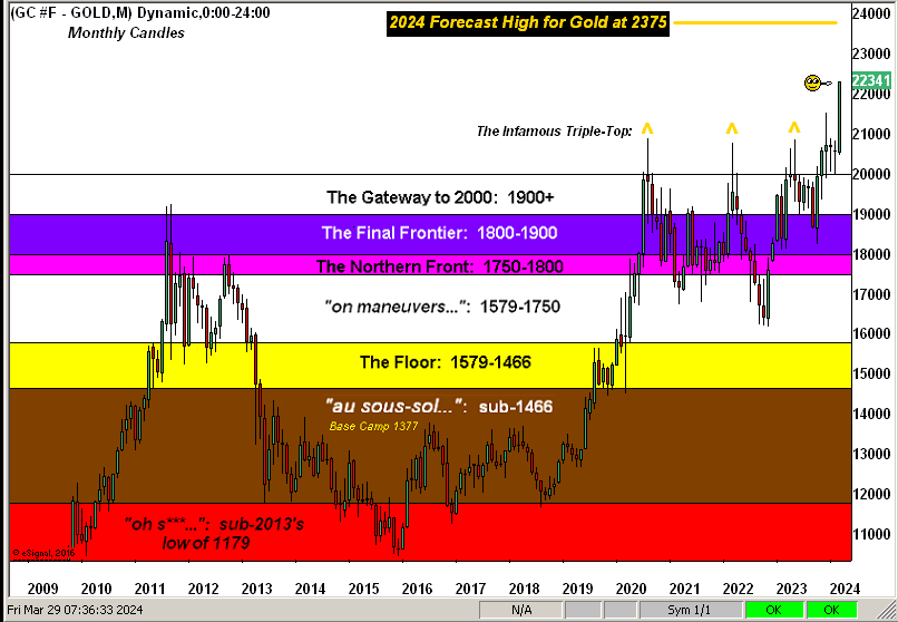 And proudly pointing to Gold’s new All-Time High is the happy guy in our 15-year view by the month of the layered price structure. This year’s Gold goal remains as shown at 2375: