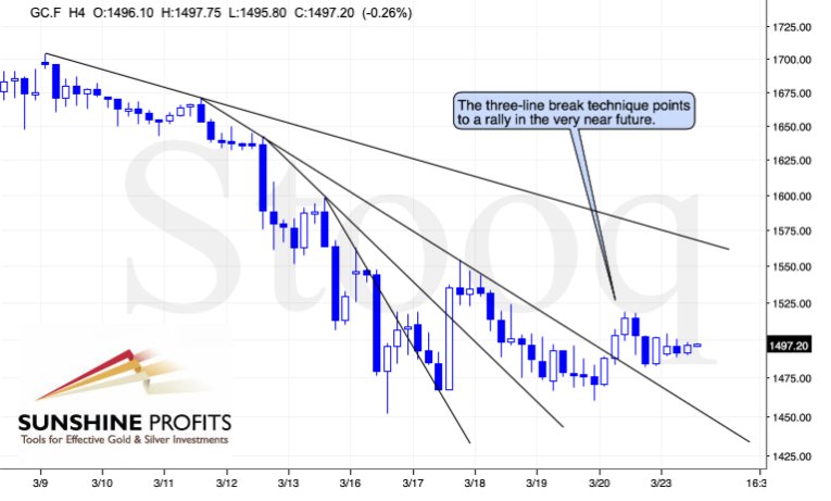 Still, based on today’s pre-market move to $1,451 along with Fed’s actions, it seems that we might get a local rebound also early this week. The above price level corresponds to the late-2019 lows, which served as support.