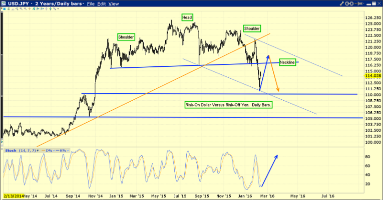 That’s the daily bars chart of the US dollar against the Japanese yen. The US dollar is the world’s largest risk-on market, and it is currently rallying towards the neckline of a huge and bearish head and shoulders top pattern.