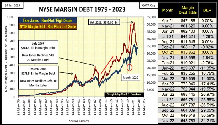 • NYSE margin debt has declined $290 billion dollars since it peaked in October 2021.