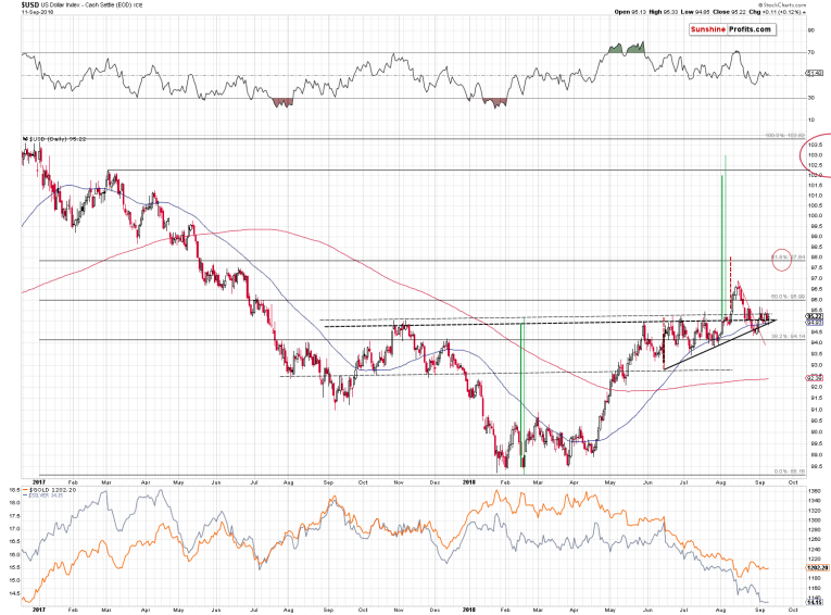 The biggest decline took place just before the middle of August and the back and forth movement that preceded it was the calmest period in many weeks and months. The only case when silver was calmer is… right now. Consequently, we may be just before the biggest short-term decline of 2018. And perhaps of the decade.