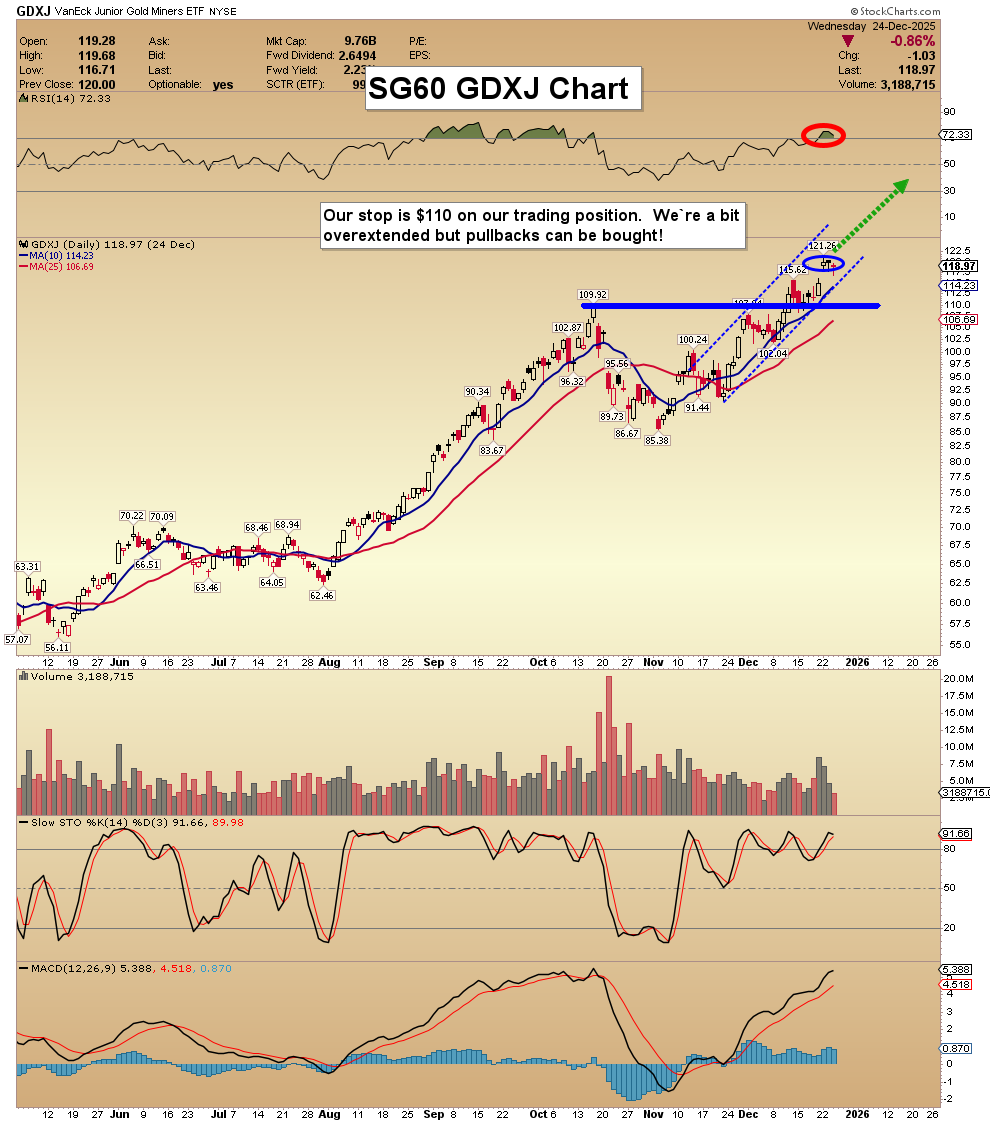The junior miners are hot, especially those involved with silver! We’ve been booking profits on some big winners and buying more of others with the proceeds. To play the action, my SGJ newsletter at only $249/year could be ideal. I’m doing a special offer of just $199 for 14 months, good through this weekend. Send me an email or click here or if you want the offer, and we’ll do it.