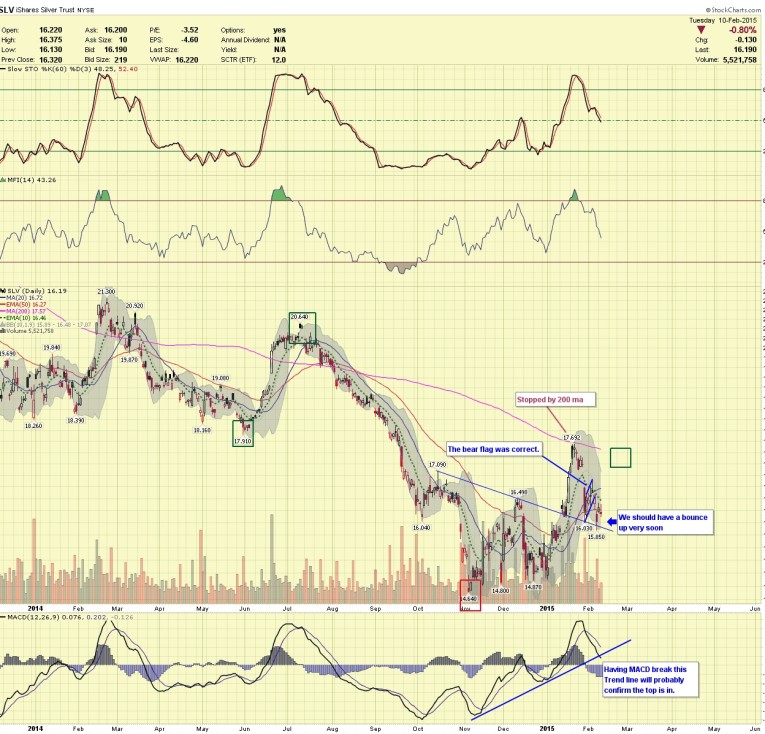 -SLV DAILY- Price broke down out of the bear flag as expected, either Gold bottomed or we will in the next day or two.