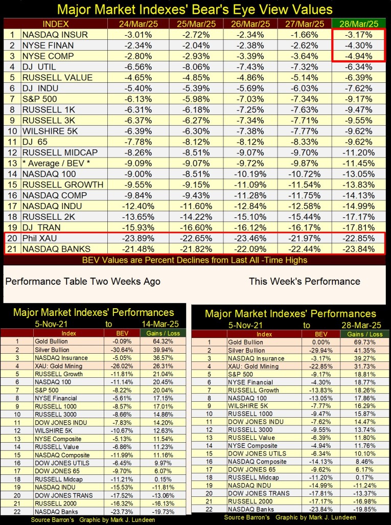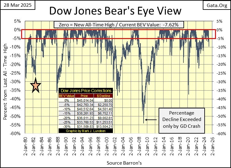 The Dow Jones closed this week with a Bear’s Eye View of -7.62%, meaning the Dow Jones closed 7.62% below its last all-time high, seen on 04 December 2024; 45,014. Okay, so what? Well, since the first of November 2023, when it first entered into scoring position, the Dow Jones has seen fifty-five new all-time highs, advancing the venerable Dow Jones by 11,739 points, or by 35.28% in the past sixteen months. That is a very nice advance.