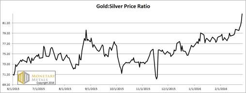 Next, this is a graph of the gold price measured in silver, otherwise known as the gold to silver ratio. The ratio was up substantially.