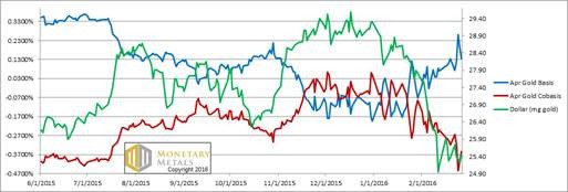 This graph shows the rates we observe to carry gold for contracts in 2016 (i.e. basis).