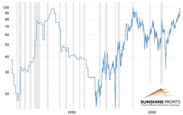 The most important thing about the gold and silver ratio chart to keep in mind is that it’s after a breakout above the 2008 high and this breakout was already verified. This means that the ratio is likely to rally further. It’s not likely to decline based on being “high” relative to its historical average. That’s not how breakouts work.