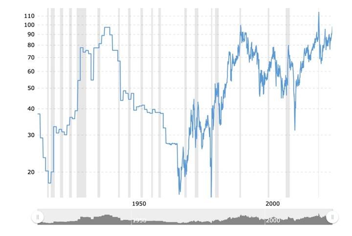 Historical gold-silver ratio. Source: Macrotrends