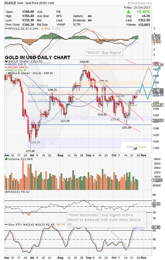 - MACD buy signal & Slow Stochastic buy signal on the weekly Gold chart.