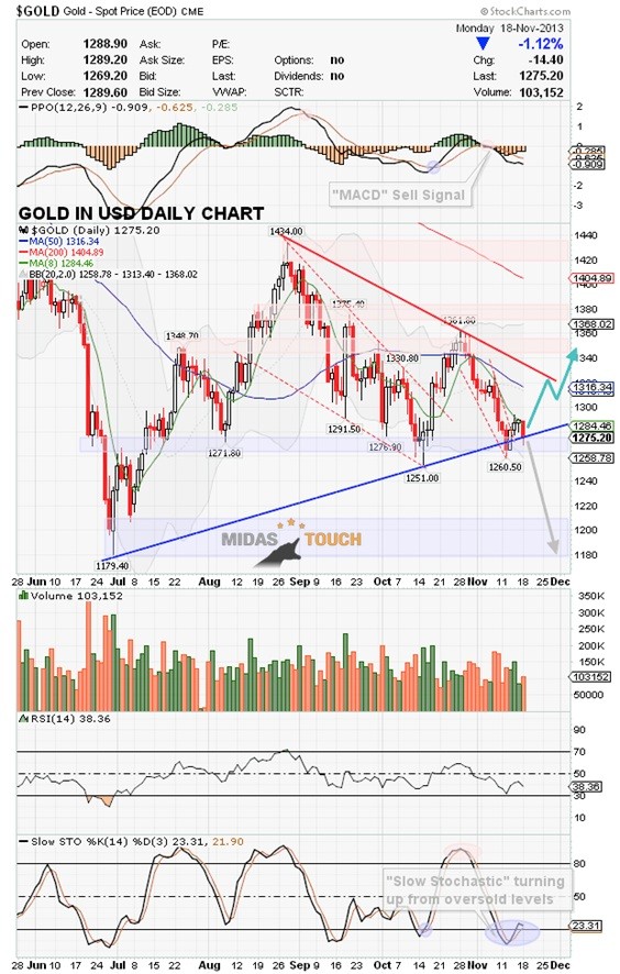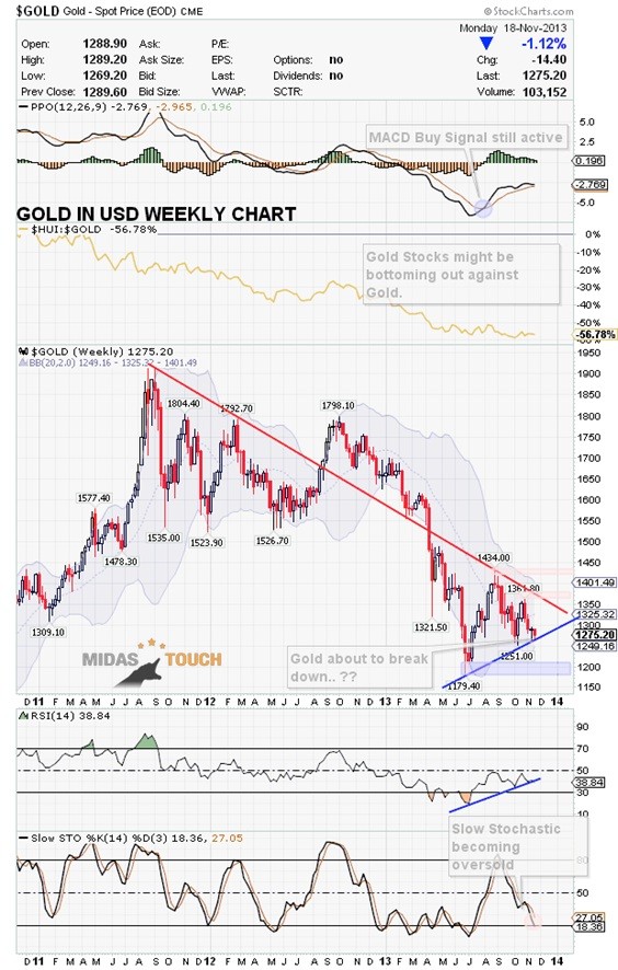 - MACD buy signal & Slow Stochastic buy signal on the weekly Gold chart still active.