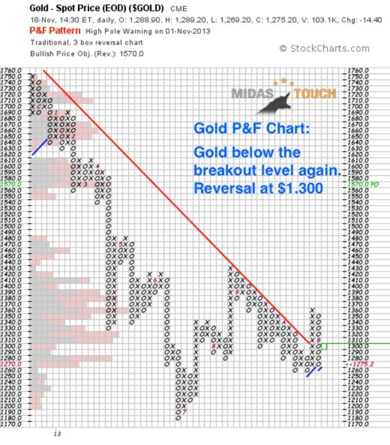 - A daily close above US1,300 brings the P&F-Chart back in bull mode.