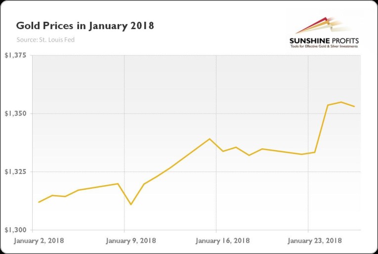 This week, the Fed holds its first meeting in 2018, the last meeting with Janet Yellen as the Fed’s Chair. As there is no press conference scheduled after the upcoming meeting, the Committee will likely keep its monetary policy unchanged. However, as the composition of voters in the FOMC will change, the U.S. central bank may send some hawkish signals. Gold bears may take advantage of it. Be prepared, the March hike is coming.