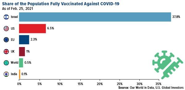 We're well on our way to vaccinating everyone, but there's still a long road ahead of us. Millions of doses have been administered (I got my second shot this week and feel great), and yet only 6.5% of the U.S. population has been fully vaccinated. Israel is the global leader with 37.8% of its population having gotten the vaccine.