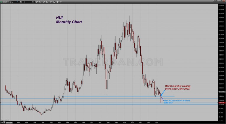 There is still no sign of any serious buying occurring in the gold mining sector. The HUI continues to plummet lower and has fallen to levels last seen in October and November of 2002! This is simply astonishing for its ferocity.