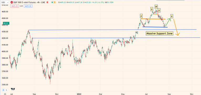 Double-click to enlarge this SP500 chart. While a H&S top appears to be forming, there’s massive support just below the neckline of the pattern.