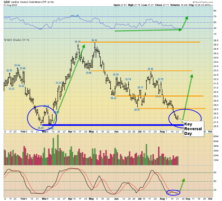 Double-click to enlarge. A key reversal is in play, with all of my “big five” indicators suggesting that now is the time to buy the miners.