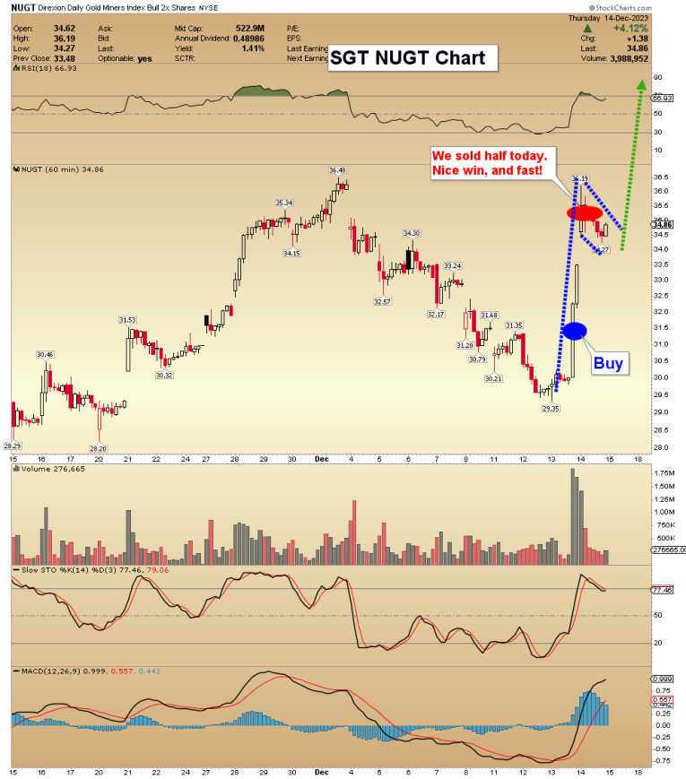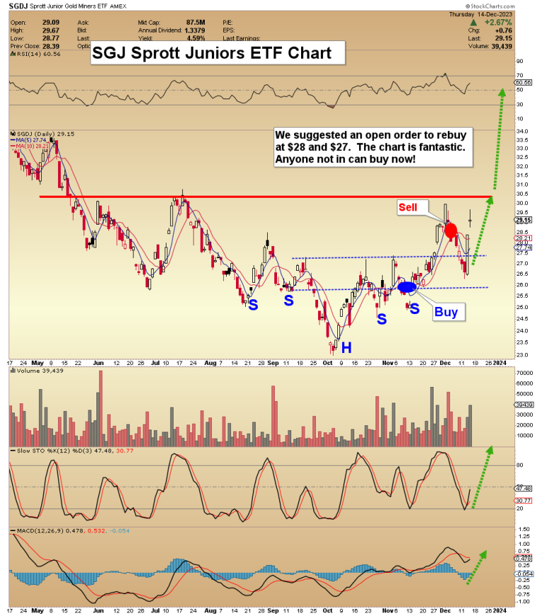 My SG60 service is ideal for investors who like a nice mix of stoploss trades and core positions. We did a big 20% across the board buy for our gold and silver stocks flagship portfolio and the positions look great! The SG60 subscription is just $229 per year, and I have a special offer this week, of $199 for 14 months. If you want the offer, please click this link or send me an email. Thank-you!