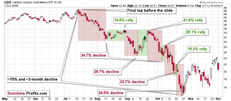 All right, let’s zoom in and see how mining stocks declined in 2008.