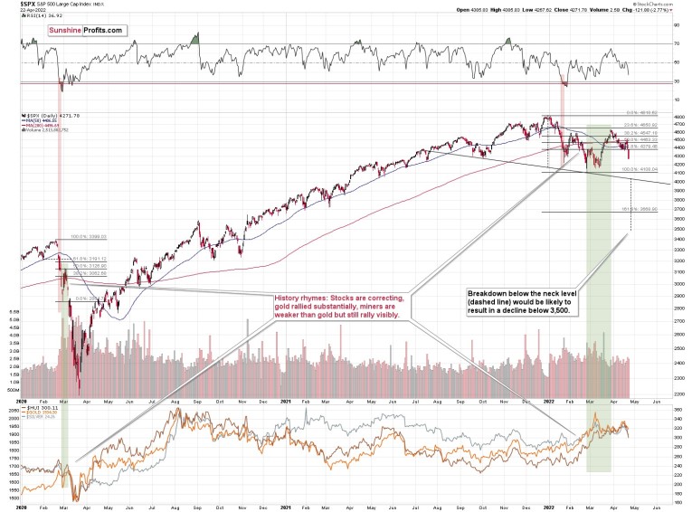Let’s keep in mind what happened in the previous cases when stocks declined profoundly – in early 2020 and in 2008. Miners and silver declined in a truly epic manner, and yes, the same is likely to take place in the following months, as markets wake up to the reality, which is that the USD Index and real interest rates are going up.