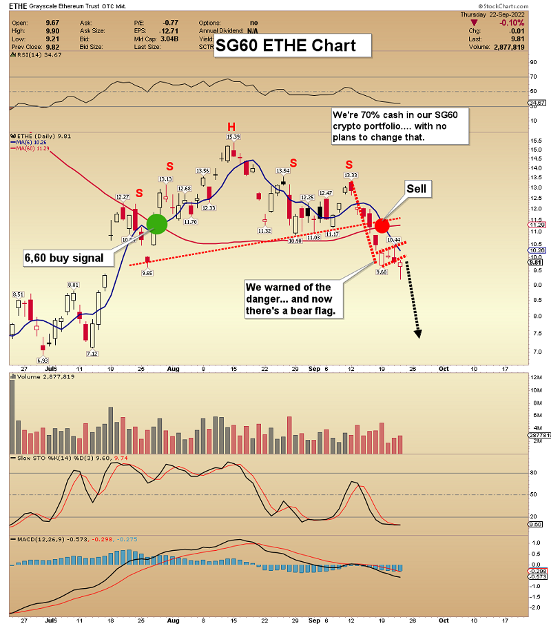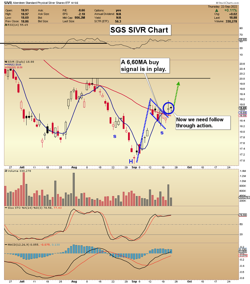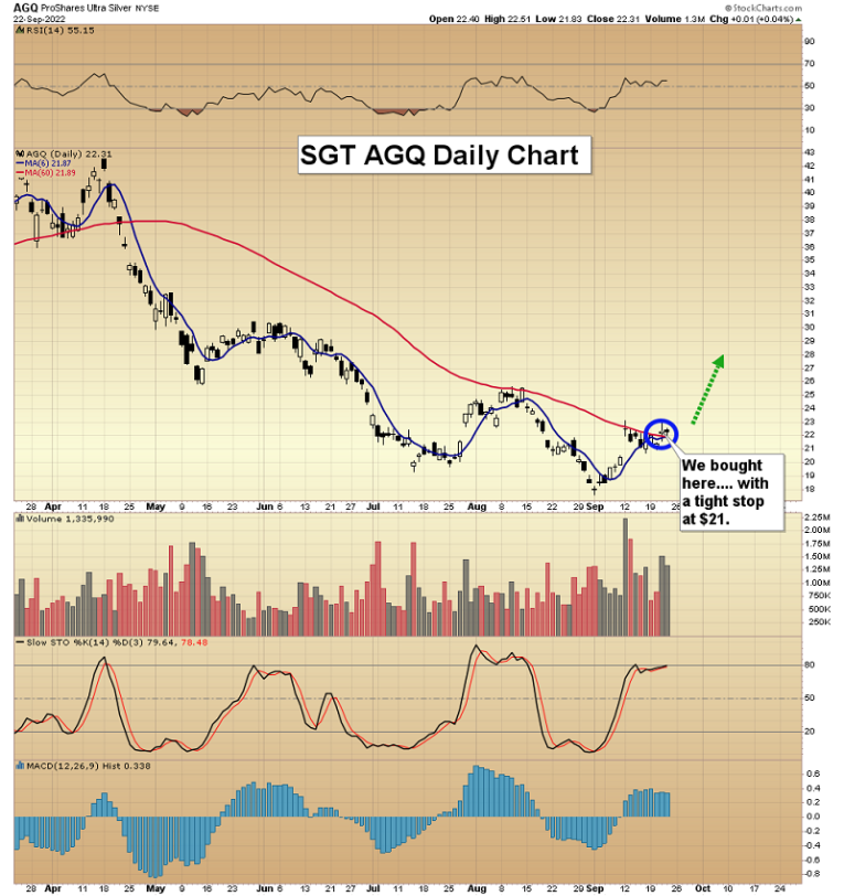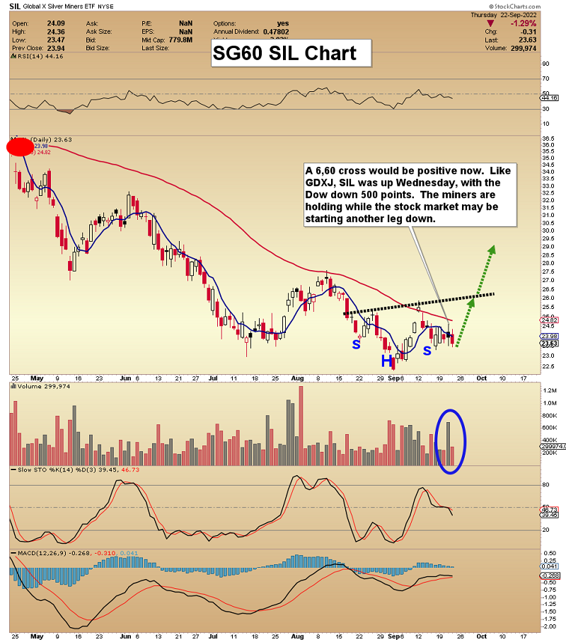 With the wild markets action after the Fed hike of 75 basis points, our huge cash levels of 50 to 70% in all of our portfolios continues to be the winning play. We have some potentially very good candlestick and moving average signals for the miners, especially with silver… but no follow through action. I have a special offer this week to help investors deal with the crazy times. My sg60 newsletter is well-priced at $229 a year, and the offer is 14months for just $199! Click this link or send me an email if you want the offer and in for our next hot gold, silver, and protective action trades!