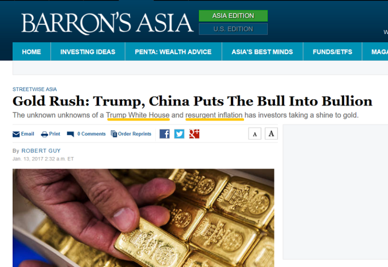 Also, for the past 50 years, gold sports a good track record of rising during US presidential transition years. 2017 is a transition year.