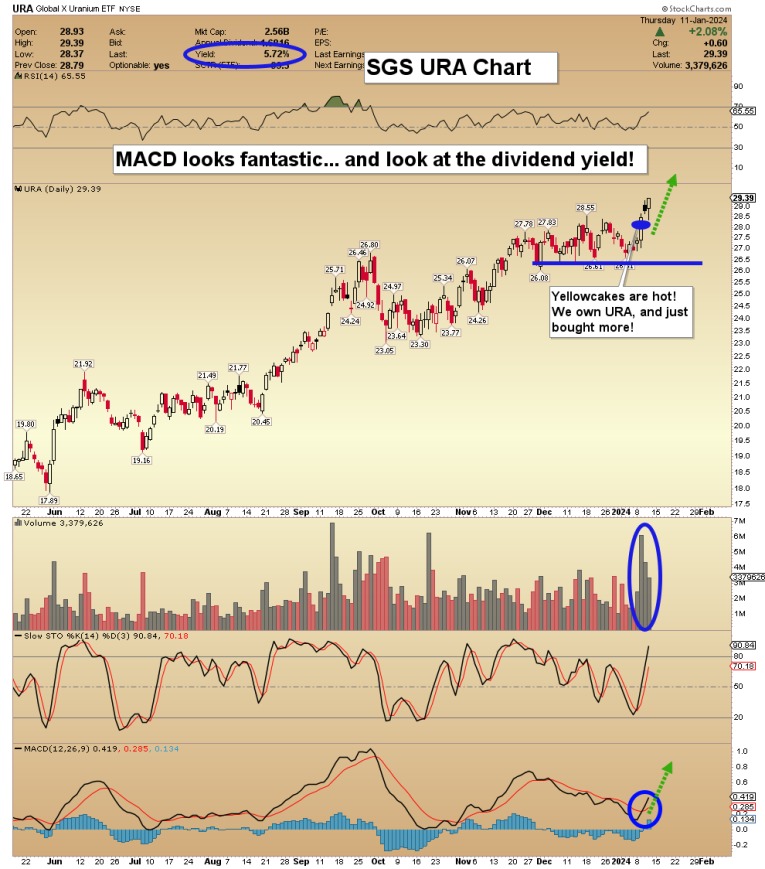 While gold and the senior miners are struggling with a short-term sell signal (that could end today!), the CDNX continues to look good and we’ve been knocking out some nice wins at my Super Gold Juniors SGJ newsletter service. The junior uranium stocks like Denison are very hot right now! At $249 a year, Super Gold Juniors is solid value for investors. I’m doing a special offer of just $199 for 14 months, good through this weekend! Send me an email or click here or if you want the offer. Thank-you!