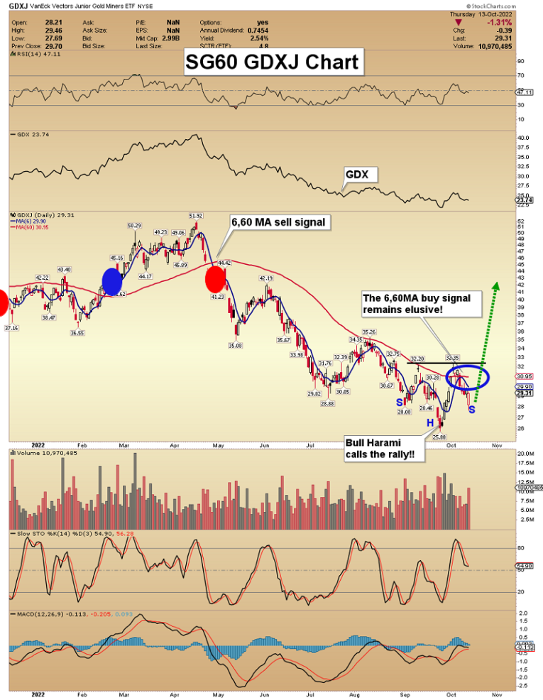 With miners like First Majestic on the move, our SPY-NYSE play yesterday, and our prudence in waiting for the 6,60 moving averages for GDXJ to signal the next leg higher, SG60 subscribers are poised for serious gains with well-managed risk! At just $229 a year, SG60 is outstanding value, and this week I'm doing a special offer of just $199 for 14 months! Send me an email if you want the offer, and I'll make it happen! Thank-you!