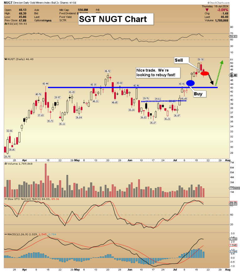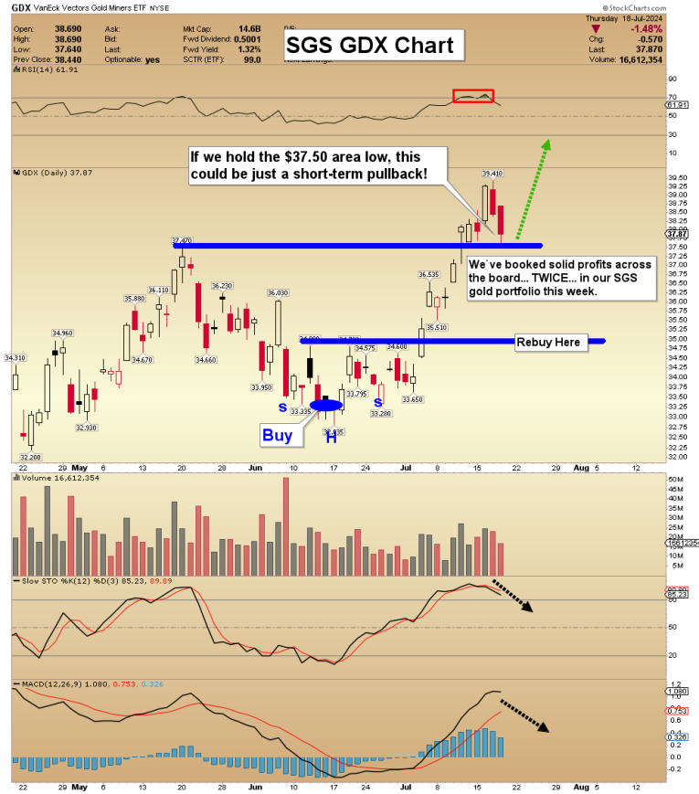 We have been across the board sellers of the senior miners this week (twice!), and US stock market sellers too. For the miners, we have key rebuy zones marked out and ready for subscriber action. At $229 a year, subscribers love the SGS newsletter value. It’s my big assets newsletter, with senior miners, gold and silver ETFs, big oil stocks, and commodity-oriented Dow stocks too. I'm doing a special SGS offer this week of just $199 for a full 14 months! Please send me an email or click here if you want the offer. Thanks!