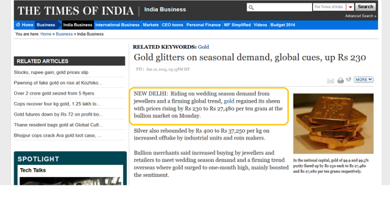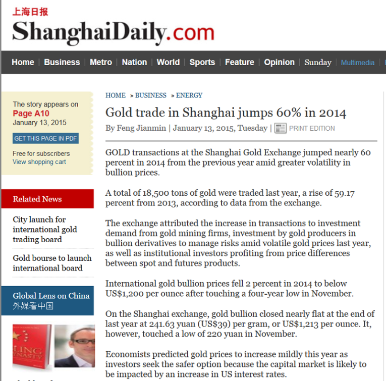 I expect global jewellery demand to support consistently higher gold prices, well into the month of February. That’s partly because Chinese stock markets had a tremendous performance in 2014.