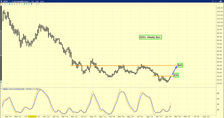 That’s the weekly GDXJ chart. Watch the $30 price zone carefully.