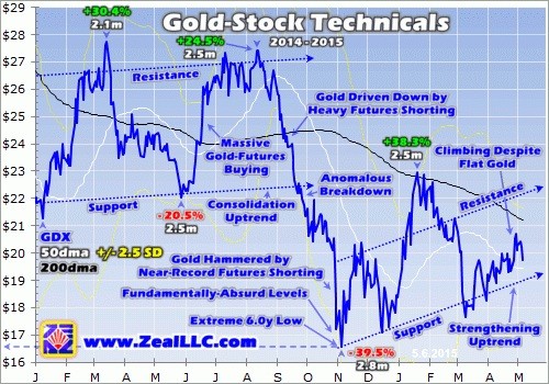 This sharp buying also emerged the last couple times GDX retook its 200dma in February and June 2014. And those strong gold-stock rallies would have kept running if not for big gold-futures shorting soon slamming the metal. But given the extreme levels of gold-futures shorting in recent years, that trade is gradually exhausting itself. Financial markets are forever cyclical, no price runs in one direction forever.