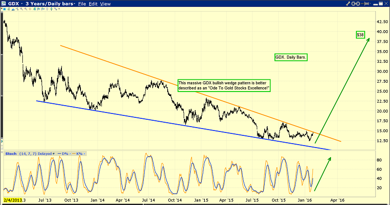 Note how close GDX is, to staging a significant upside breakout above the supply line of the wedge! Within GDX itself, many of the component stocks are staging massive upside rallies. That suggests a GDX breakout is now imminent.