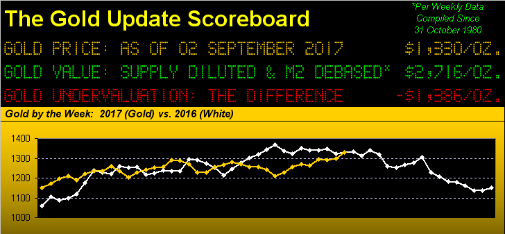 Still, let's go inside the numbers. Through August and a day in 2017, gold is +15.4%. For the 45 years going back through 1975, this is gold's eighth-best January through August percentage performance, and the fourth-best like performance millennium-to-date. Considering the drudging gold has endured these past six years, not to mention its ridiculously low valuation, we'd say this year's performance-to-date is superb.