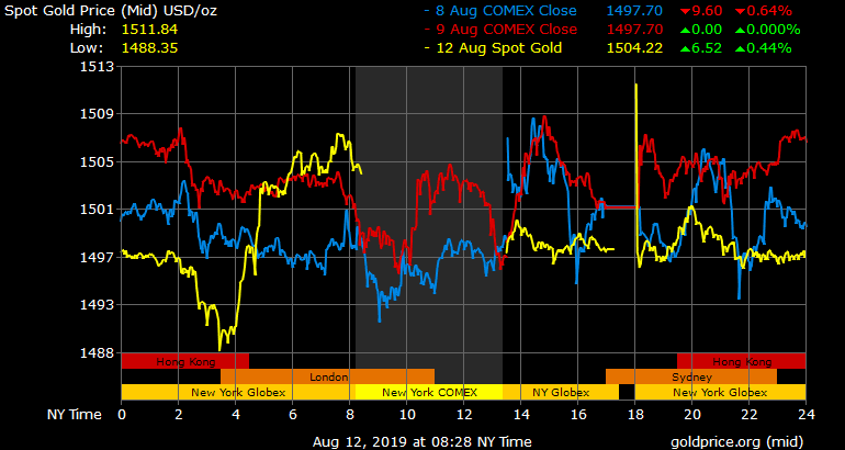 * Volatile trading overnight saw gold go higher, lower and then higher again as gold seeks to consolidate at $1,500/oz (see gold in yellow in chart above)