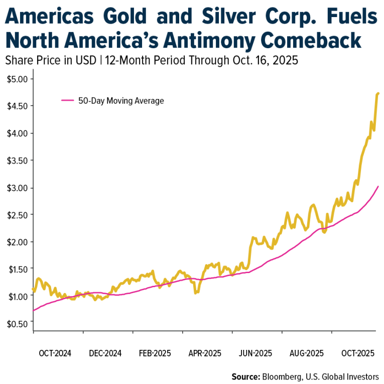 - Americas Gold and Silver’s strong antimony intercepts at its Galena Mine position the company as a dual precious- and critical-minerals producer aligned with U.S. strategic priorities to secure domestic supply chains. Combined with Canada’s welcoming stance toward U.S. investment in critical minerals, this cross-border cooperation could help North America onshore processing, reduce reliance on China, and build a resilient antimony-and-silver supply network.