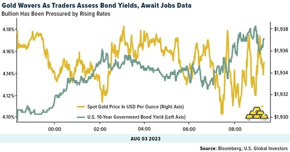 - The worst performing precious metal for the week was silver, down 3.23%, as the historic 3-to-1 move for silver and gold were lockstep this week. AngloGold released a 1H23 trading statement guided to a 48-58% year-over-year decline in headline earnings per share (HEPS) to USc30-37, which is 46-56% below company compiled consensus of 68 cents per share. Management highlighted that HEPS were negatively impacted by a non-cash environmental provision of $38 million net of tax and the effect of continued industry-wide inflation which impacted operating costs by $111 million.