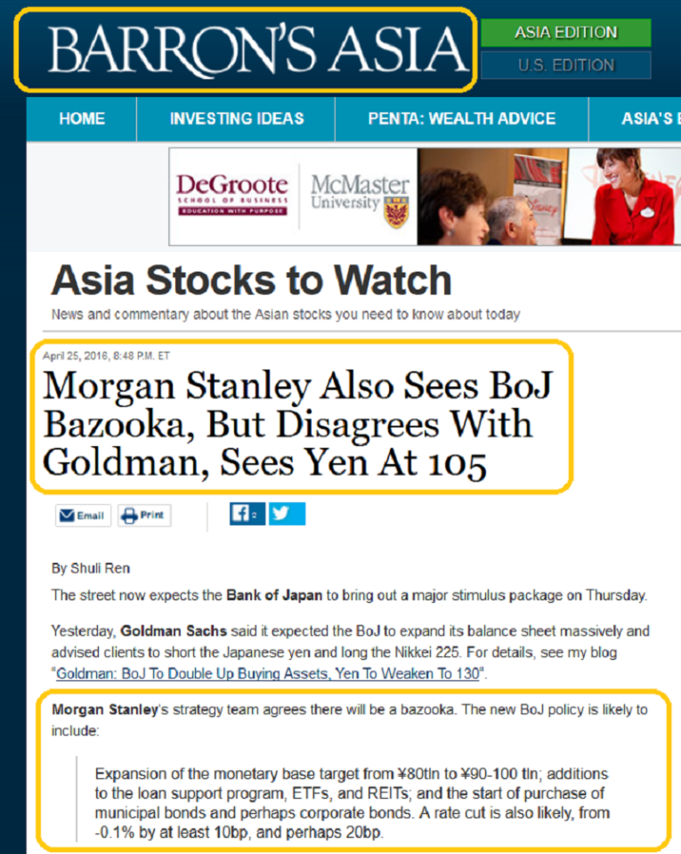 Kuroda is attempting to send the stock market higher just as the seasonally weak month of May arrives, and that’s a tall order, especially when powerful money managers at Morgan Stanley are going to use any strength to exit the market.
