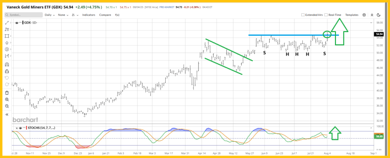 This is a fabulous GDX chart. There’s an exciting triple-headed inverse H&S pattern in play… with a close over the neckline of the pattern.