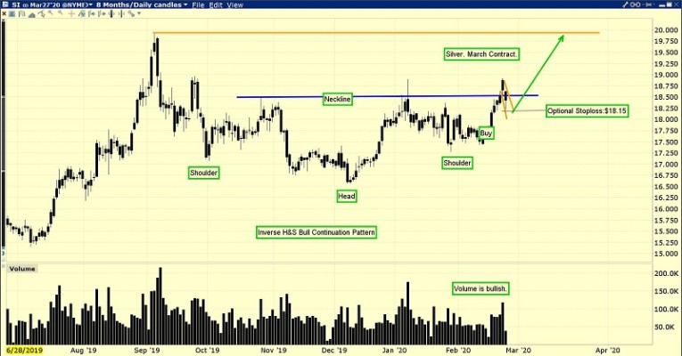 I urged investors to buy around the right shoulder low of this spectacular inverse H&S bull continuation pattern, with an optional stop at $17.15.