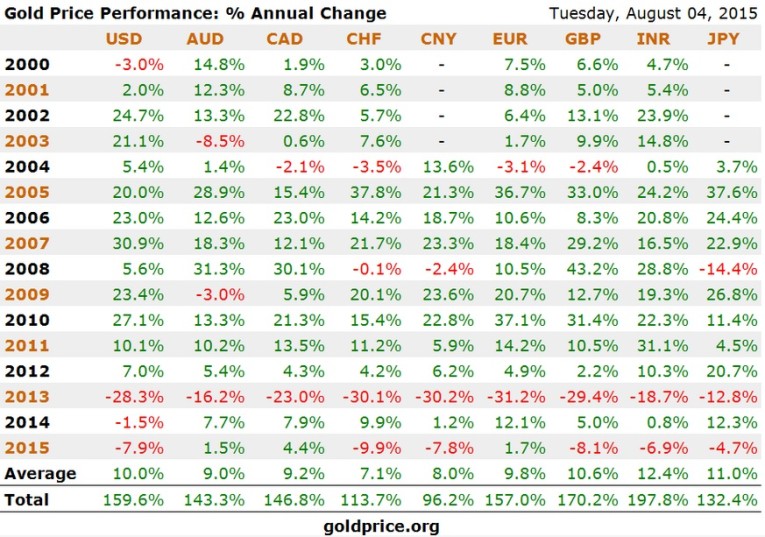 - In euro, gold is up 2% in 2015, after 13% gain in 2014