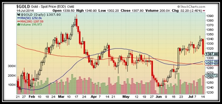 The price of spot gold breached the $1,340 an ounce level to hit a four-month high last Thursday as the shares of Portugal’s largest bank, Espirito Santo, were suspended, sending tremors through global financial markets, triggering a sharp fall on European bourses and a flight to safety across the world.