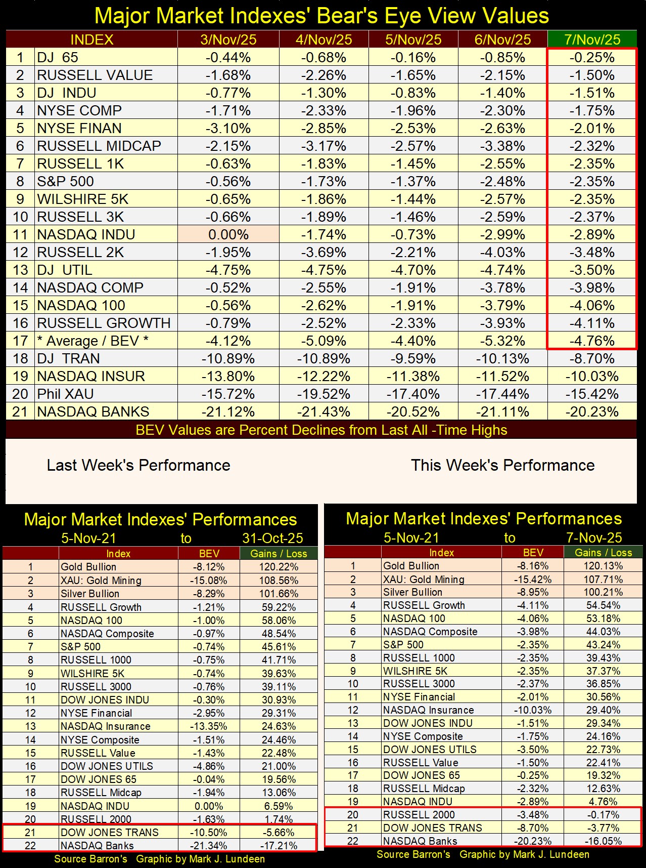 I note at this week’s close, there were three indexes closing below where they were on 05 November 2021; #20 to 22.  When Mr Bear comes to pay the bulls a visit, this is a list destined to grow.