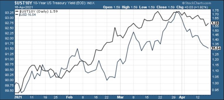 As a result, if the U.S. 10-Year Treasury yield and the USD Index engage in an all-out offensive, their military might could indicate the death knell for the precious metals. Case in point: if you analyze the table below, you can see that gold, silver and the mining stocks often move inversely to the U.S. dollar.