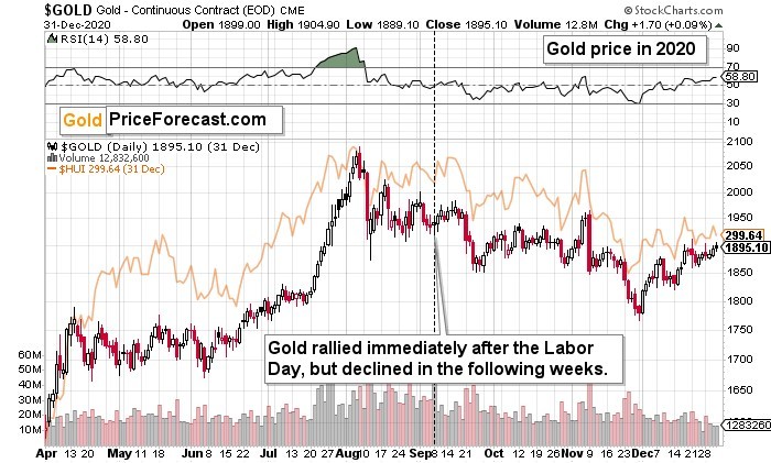 It turns out that in both cases, gold did not decline immediately after the Labor Day. Conversely, it moved higher. The point is, however, that this move up – again, in both cases – was short-lived.