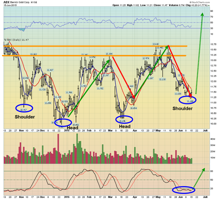That’s the daily chart for Barrick. In late April, I predicted a seasonal pullback would occur, with an $11 target. It went to $11.18, and now I’m predicting a massive Barrick rally will stun the bears, and lead gold stocks higher in gold’s strong season!
