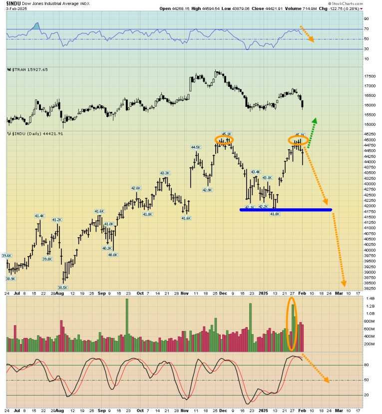 This is the vital US stock market chart. A major double top, an end to the bull market, and the potential 1929 or 1966 wipeout were all pretty much a “done deal”… before Trump killed the tariffs and the Panama invasion.