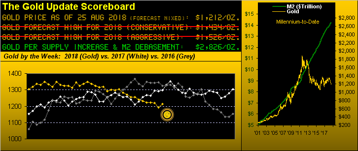 And who says the BEGOS Markets can't be all in positive correlation to one another? They are now. With the Dollar Index having fallen a wee skosh (-1.6%) from 15 August, you can below see all five of our markets having since been on the rise. Might the FOMC folks be feeling a little force to back off bit? Powell did utter the "gradual" word at the foot of the Tetons on Friday. Still, there's nearly five weeks to run into the next powwow at the Eccles Building in DC; time enough for gold to gain further grippity: